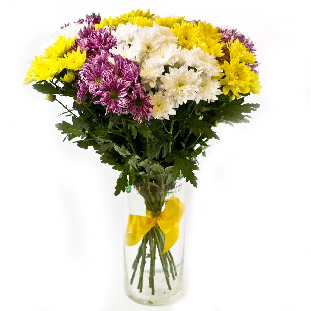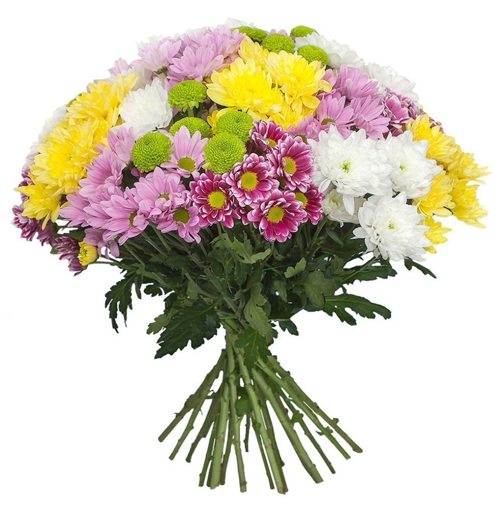 Цветок идеально подойдёт для составления яркого букета на 1 сентября от класса. Каждый ребёнок может подарить по одному стеблю, а у учителя в итоге получится один большой, объёмный и гармоничный букет. Также разноцветные кустовые хризантемы будут уместны для поздравлений маме, коллеге или как элемент сезонного оформления.